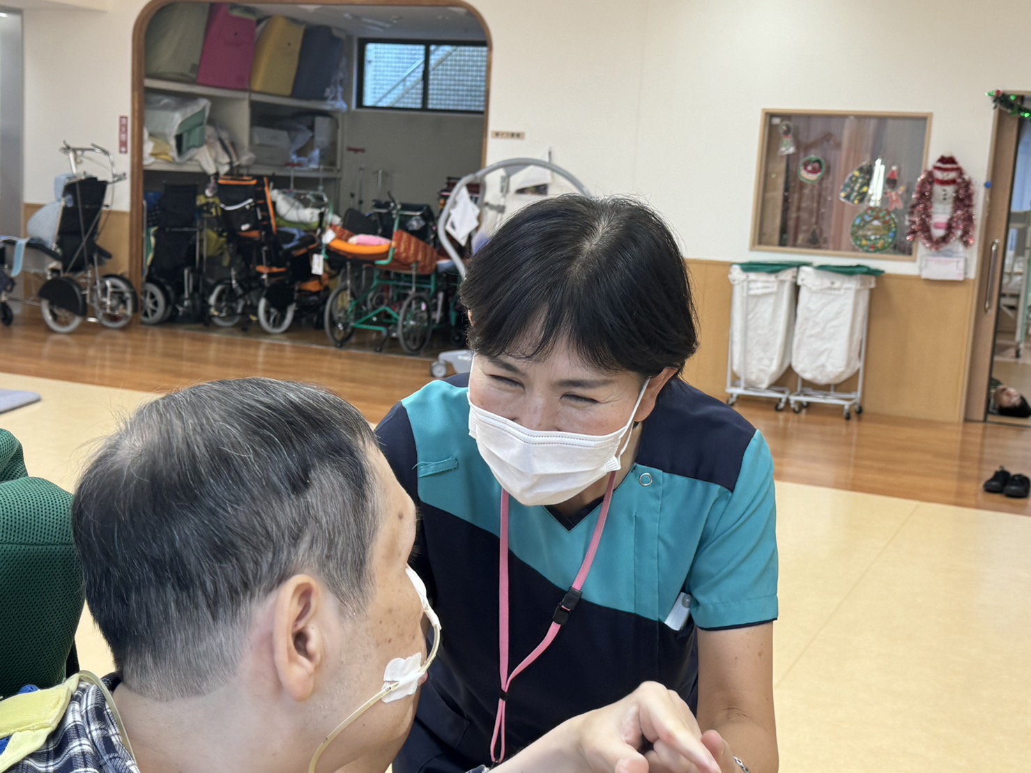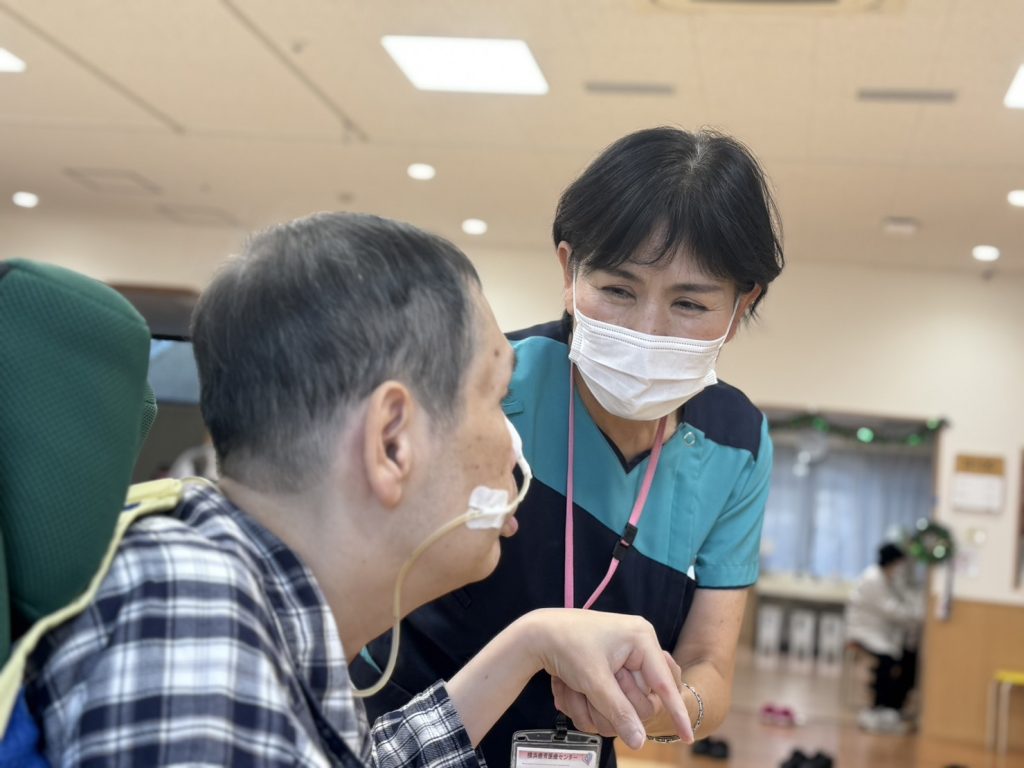 当施設の特徴は医療と施設を兼ね備えた施設で、障害児者の方々の終の棲家として、治療の場ではなく生活の中の医療を提供していることです。そのなかで看護師の役割は、重度障害を持つ方々が日々、自分らしく生活できるよう身体のケアを行うことです。意思の疎通が取れない方とは、心拍数や瞼の動きなどから、その思いを理解することも求められています。自分から痛みや苦痛を訴えられないため、全身管理を行う難しさがあります。どうサインを読み取るか、観察力を身につけることが必要ですが、ここでその力を身につければ、違う領域で活かしていけると思います。