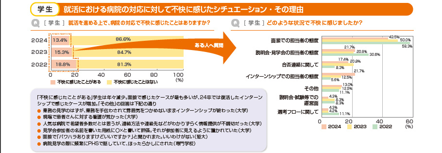 就活における病院の対応に対して不快に感じたシチュエーション・その理由