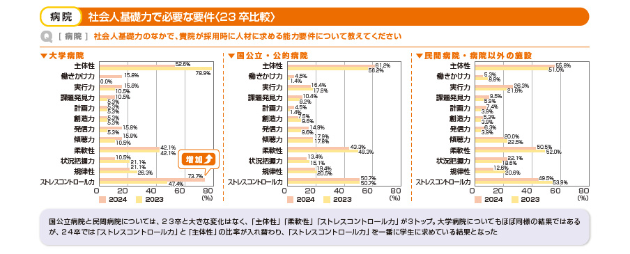 ● 国家試験合格率の向上と社会人基礎力の習得。24 卒では内定者の1 割が国試不合格で採用人数が減少した(国公立・公的病院)