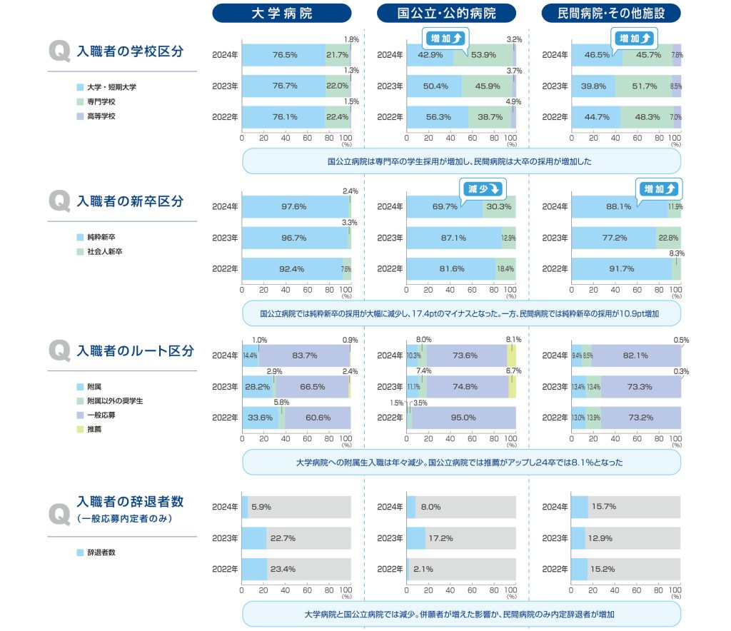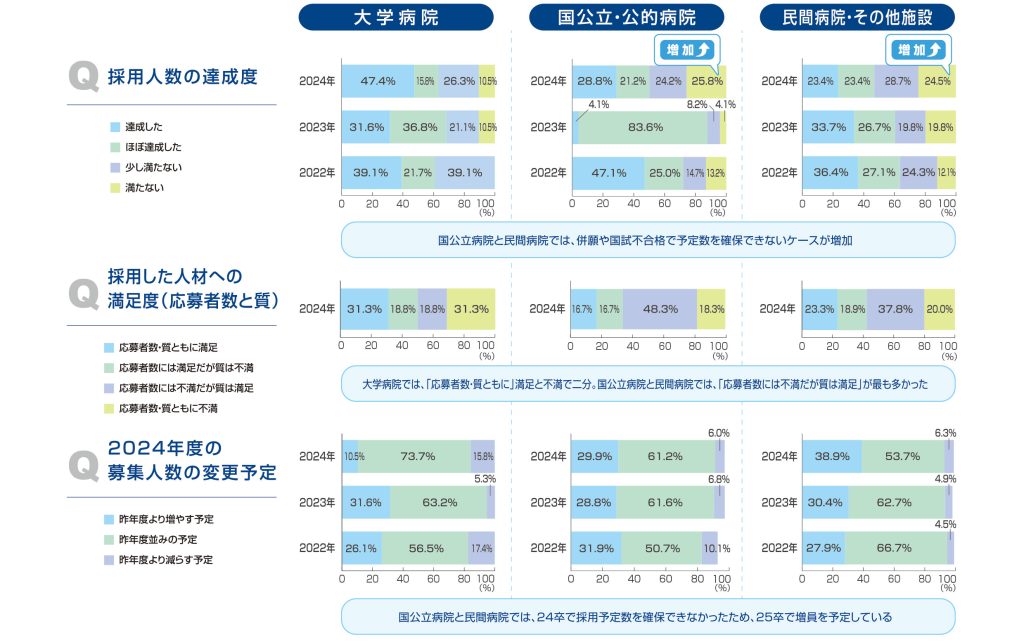 ● 国家試験の不合格者が多数出たため、結果としては非常に厳しい人員採用数となった(国公立病院)