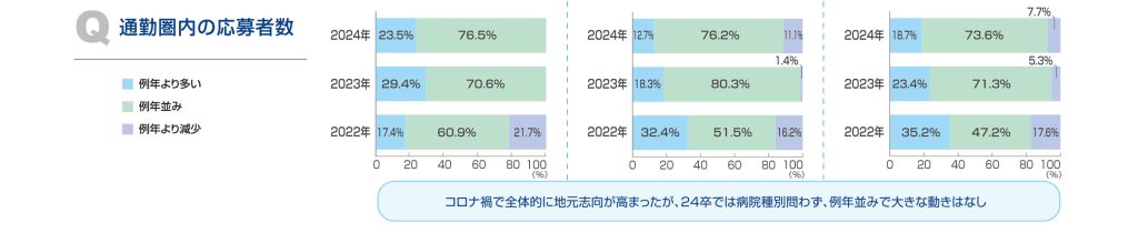 ● とにかく応募する学生が減少傾向にある。東京・埼玉への希望が多い(大学病院)