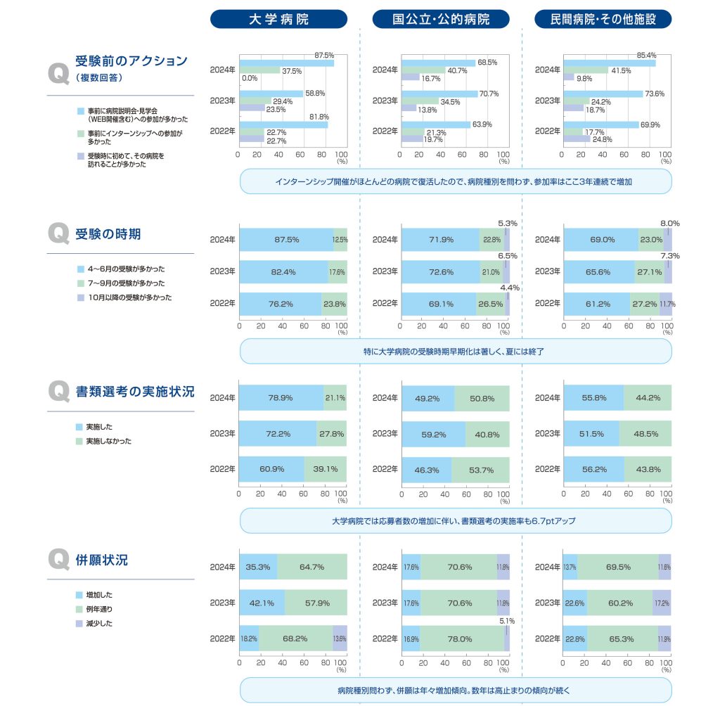 ● 併願禁止は考えていないが、面接の際に併願する旨や志望度を正直に伝えていただきたい。人員計画が立てやすくなる(大学病院)
